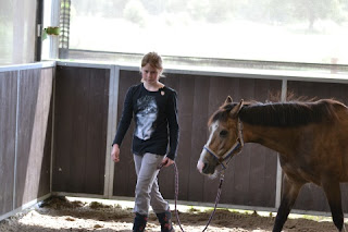 Ook van vadaag weer wat foto's. Helaas voor Nikki geen foto's op het paard want vandaag mocht ze niet rijden omdat de paarden al zo hard moesten werken die dag maar ze mocht een aantal loopoefeningen doen waarbij de therapeut Nikki wat opdrachten gaf om uit te leggen wat zij doen met Cesarpaardentherapie.
